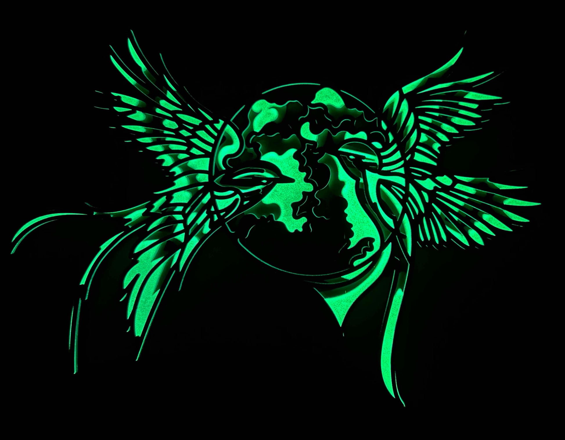 Enhance your home decor with our handcrafted wooden glow in the dark layered art piece. Each piece is hand painted and glittered, adding a touch of sophistication and uniqueness to your space. Enjoy the calming glow and intricate details of our art.